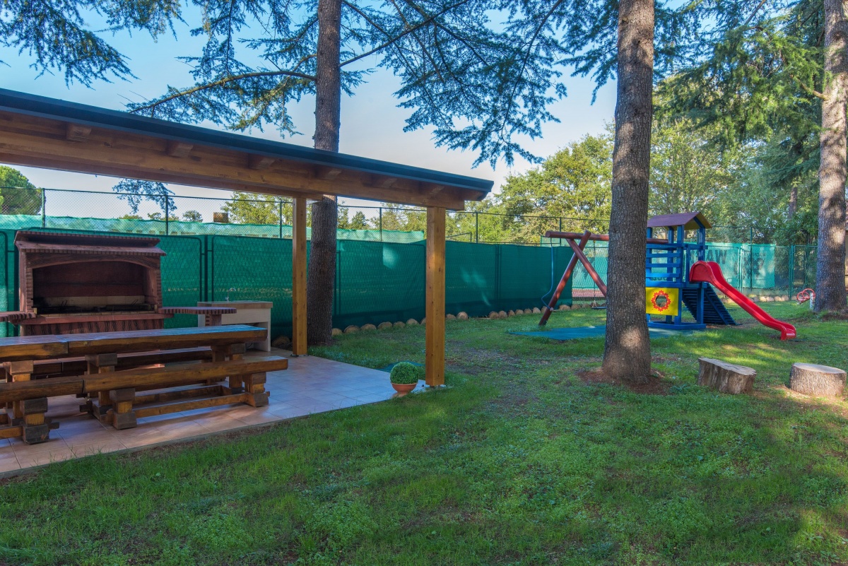 Set in the green surrounding of the complex is a stone barbecue and a terrace with benches.Other utensils are ready for you when you decide to make your holiday memories perfect by preparing delicious food for the people you love.