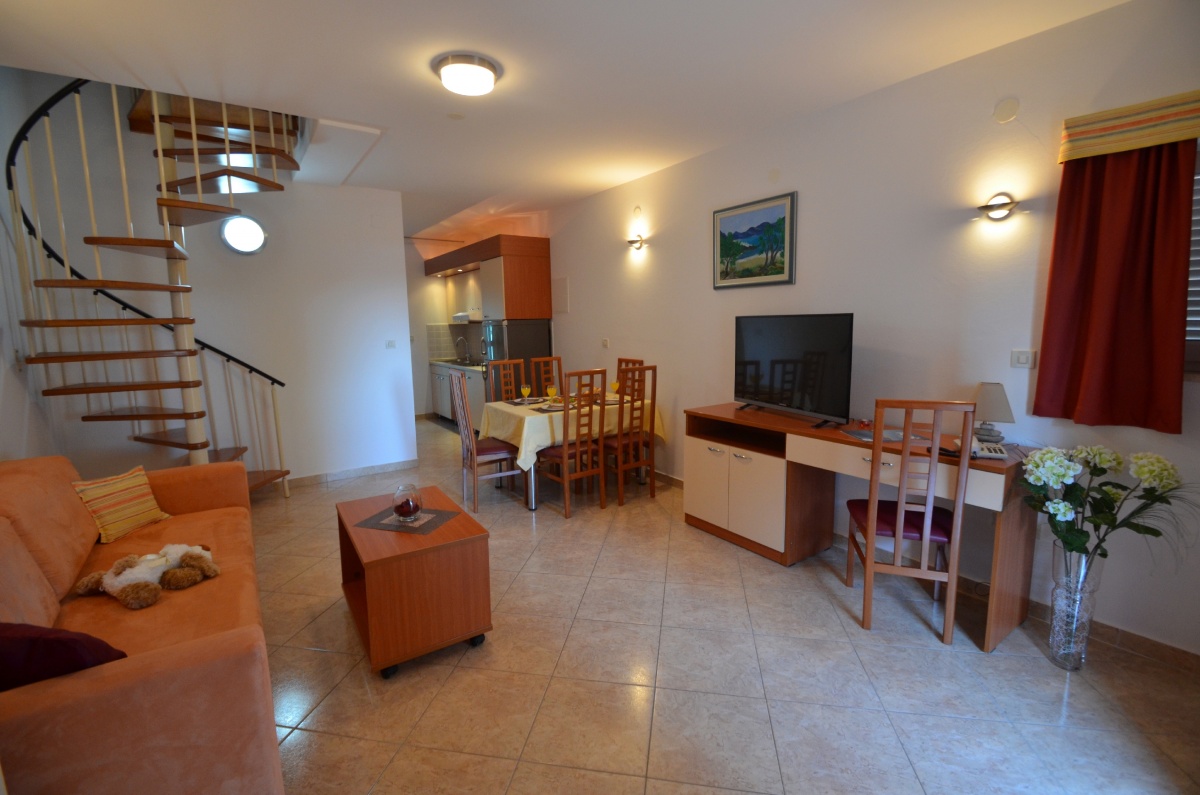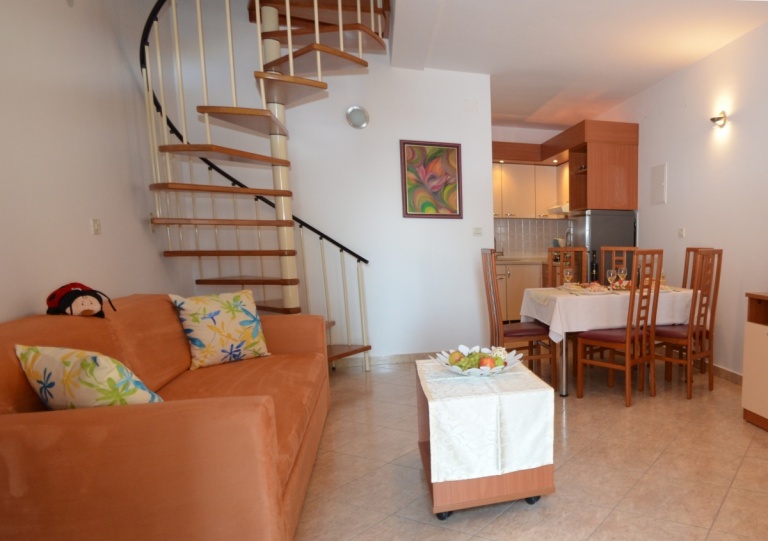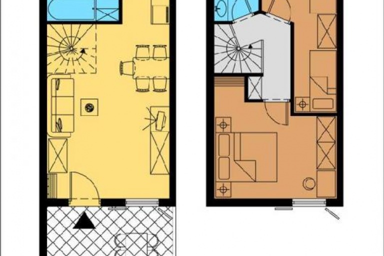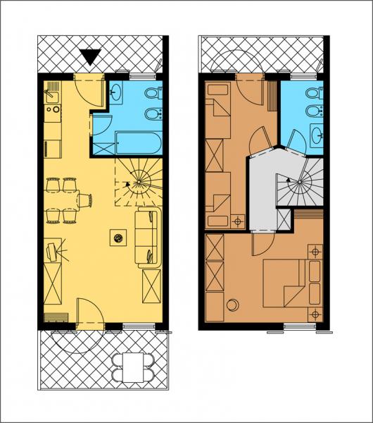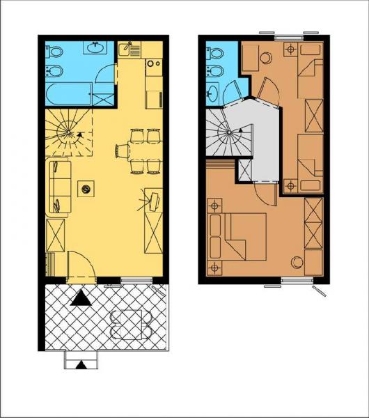 Duplex apartments, with a spiral staircase connecting the two levels.